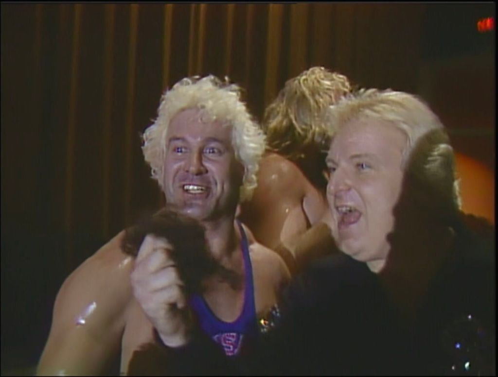 Ma la Family era troppo numerosa per Hogan, che venne intrappolato nell’infrangibile Full Nelson di Ken Patera, mentre Heenan portò un paio di forbici nel ring con un chiaro obiettivo: voleva tagliare i capelli di Hogan come già fatto con André!