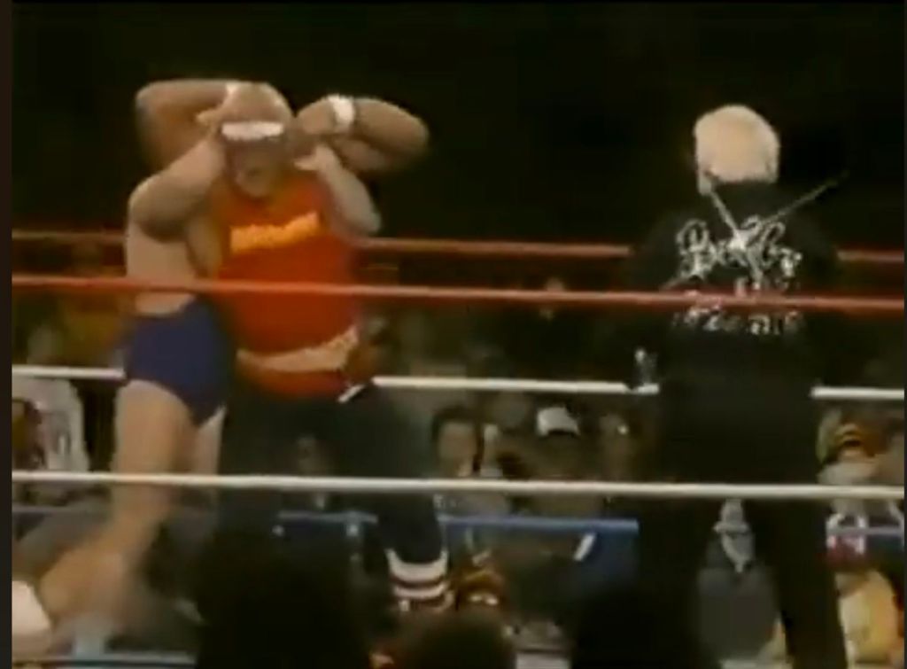 Comunque la si pensasse su “Rowdy” Roddy Piper, il suo Piper’s Pit era indubbiamente la vetrina migliore per presentarsi ai fan, anche se voleva dire passare per il trituratore che era il trash talking dello scozzese. Da qualche settimana a presenziare agli show WWF c’era sempre un curioso fan tra le prime file, che coi suoi 2 metri di altezza svettava su tutti gli altri: si trattava di Big Jim, un contadino del Kentucky che sperava di essere notato dalla federazione per il suo fisico possente. Anche se non era un wrestler, la sua imponente stazza attirò l’interesse proprio di Roddy Piper, che lo ospitò al Piper’s Pit, con l’intenzione di farne magari un bodyguard come “Cowboy” Bob Orton.