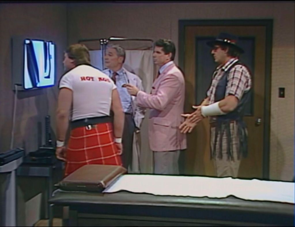 Orton si era rotto radio e ulna a febbraio durante il suo match contro Jimmy Snuka a The War To Settle The Score, ma la frattura era composta, e non necessitava di un intervento, tanto che secondo il Dr. Stevens (intervistato a riguardo da Vince McMahon a Tuesday Night Titans) ormai le ossa di Orton si erano perfettamente riallineate, senza più il bisogno del gesso. Roddy Piper però non la pensava allo stesso modo, sostenendo che la radiografia fosse fasulla, e che il gesso fosse fondamentale per attenuare il lancinante (!) dolore di cui soffriva il suo bodyguard.