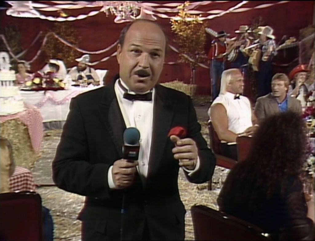 Era un evento storico: fu il secondo matrimonio della storia della WWF dopo quello tra Paul Vachon e Ophelia visto a dicembre, e una volta partita la marcia nuziale suonata da “Mean” Gene Okerlund, era finalmente giunto il momento di un pò di sano romanticismo dopo tanta acredine e tensioni che imperversavano in WWF (con Jesse Ventura che al tavolo del commento si sbellicava dalla risata davanti all’impacciataggine di zio Elmer davanti al prete). Dopo le schermaglie avute al Piper’s Pit, come prevedibile “Hot Rod” arrivò per rovinare la celebrazione, sostenendo che un matrimonio non si potesse svolgere su un ring fatto per combattere.