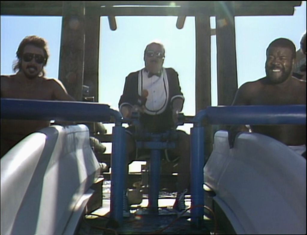 Dopo quanto accaduto alla fine dell’anno, era inevitabile un rematch tra Hulk Hogan e Terry Funk per il titolo WWF. Il grande evento avvenne in una nuova puntata del Saturday Night’s Main Event, ormai un appuntamento sempre più fisso, ma rispetto al loro precedente incontro ci sarebbe stata una piccola aggiunta, perché sull’Hulkster avrebbe vegliato Junkyard Dog! Il compito di “JYD” era proteggere Hogan dai tiri mancini di Jimmy Hart a bordo ring, e tra i due non sarebbero mancate interazioni ostili, soprattutto dopo quanto successo al Saturday Night’s Main Event di novembre, dove Junkyard Dog marchiò Hart a sua volta con il ferro di Funk. Dopo l’umiliazione subita Hart sfidò “JYD” nell’unica competizione in cui si sentiva imbattibile: una gara di scivoli acquatici (!), da cui però “The Mouth of the South” uscì comunque sconfitto!