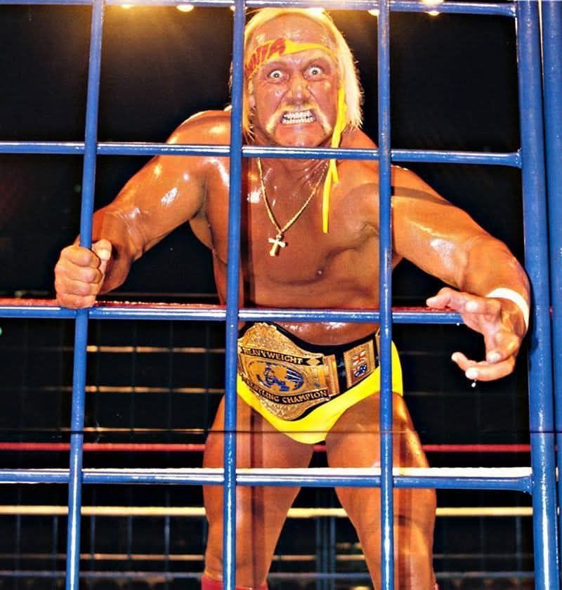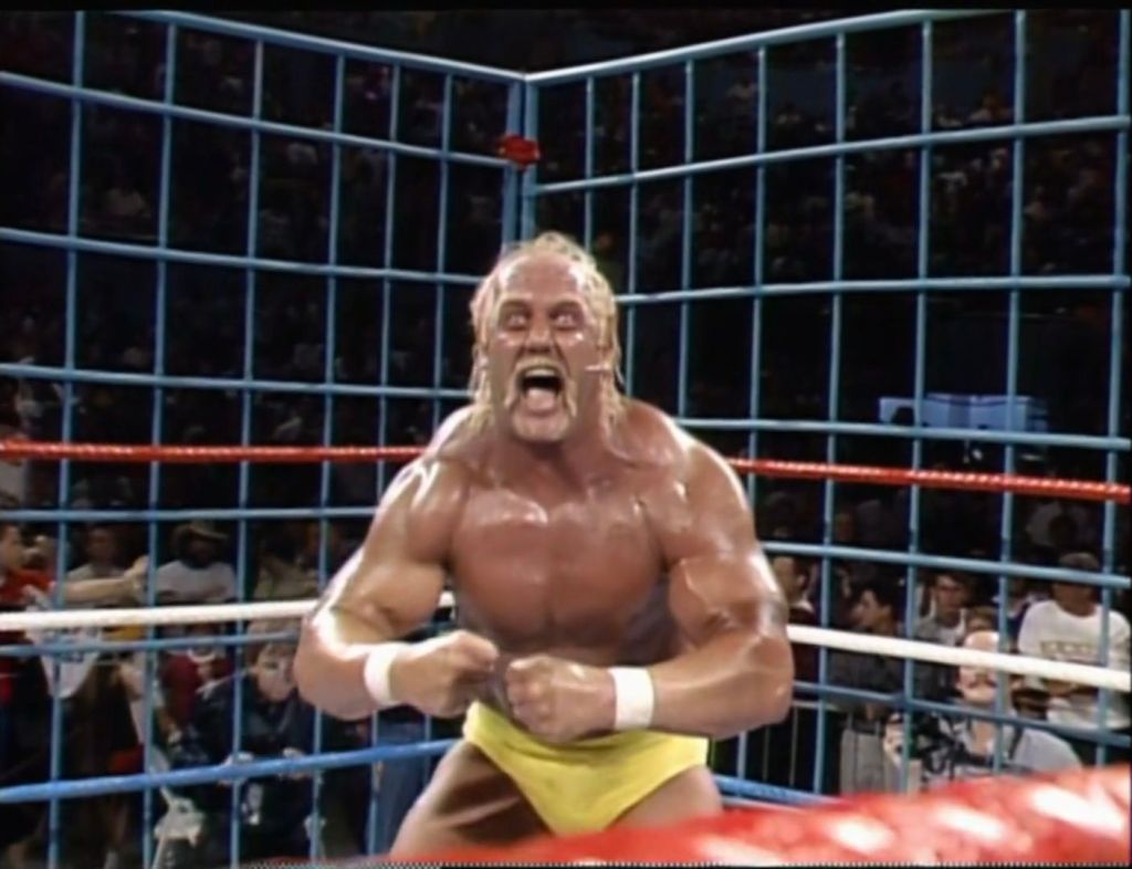 E finalmente arrivò il momento più atteso, quello del main event, lo Steel Cage match tra Hulk Hogan e King Kong Bundy per il titolo WWF! Prima ancora che l’incontro iniziasse, i fan furono subito sorpresi da una novità: la gabbia che avrebbe circondato i due titani era molto diversa dal solito, non più un quadrato fatto della classica rete d’acciaio, ma una serie di sbarre dritte e azzurre, molto più spesse e dure di quelle tradizionali, simili a quelle delle prigioni.