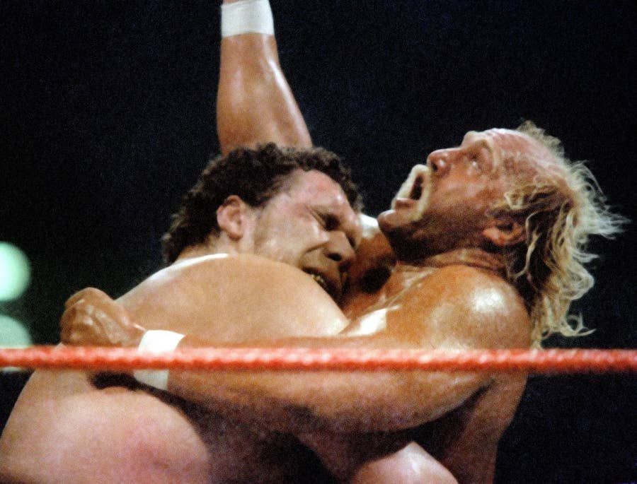 A rompere il silenzio ci pensò André con una manata, ma l’Hulkster tentò subito una Body Slam, venendo però schiacciato dal troppo peso di André e infortunandosi alla schiena, infortunio che André tentò di peggiorare per tutto il match. Il gigante francese lo stritolò anche in una devastante Bear Hug che avrebbe spezzato un tronco, ma Hogan riuscì incredibilmente a liberarsi, per poi tentare buttarlo a terra con ogni mezzo.