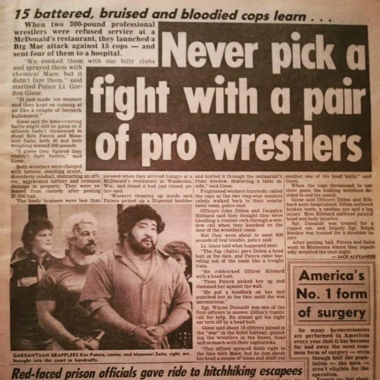 Patera era stato uno degli uomini di punta della prima Heenan Family (fu lui che insieme a Big John Studd tagliò i capelli a André the Giant), per poi sparire nel nulla alla fine del 1984. I fan ovviamente non erano a conoscenza del motivo, ma fu proprio la WWF a fare chiarezza in vista del suo ritorno: l’ex strongman era stato condannato a 2 anni di prigione per una rissa scatenata in un McDonald’s, aggredendo persino degli agenti di polizia insieme all’amico Masa Sato (wrestler della NJPW).