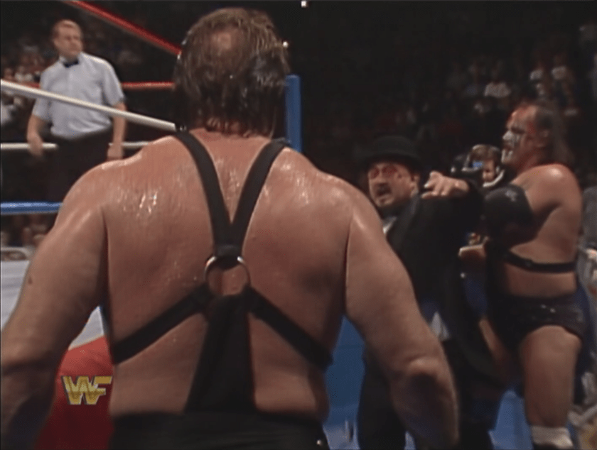 Con i loro precedenti, era Rude che voleva togliersi la soddisfazione di schienare “The Snake”, ma visto che il serpente è più pericoloso proprio quando messo in un angolo, Roberts lo sorprese dal nulla con una DDT per il contro di 3! Nonostante Roberts avesse tutto contro l’aveva fatta pagare a Rude per le avance a sua moglie, ma c’era pur sempre André the Giant da affrontare. Roberts non aveva le forza di chiamare a sé Damian, e dovette soccombere alla forza erculea del francese, che lo strozzò per svariati secondi, ignorando i richiami dell’arbitro, che per questo lo squalificò.