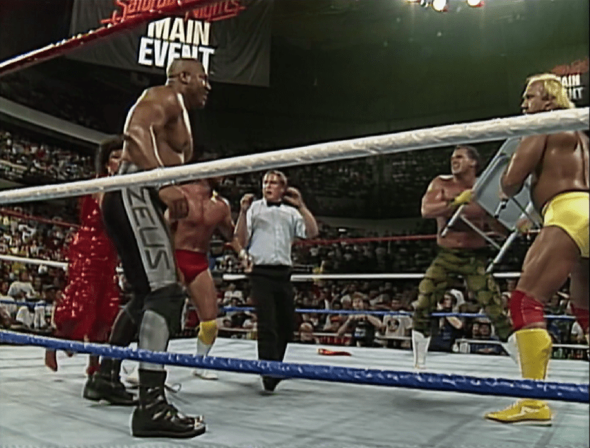 Randy Savage e Brutus Beefcake si affrontarono anche uno contro uno alla nuova edizione del Saturday Night’s Main Event, in un match in cui intervenne anche Zeus dando dimostrazione di tutta la sua forza. Hogan ovviamente arrivò in soccorso di “The Barber”, scoprendo però quanto l’antagonista di No Holds Barred potesse essere temibile. Zeus era enorme e dotato di grande forza fisico, ma non era il più grosso o forte che l’Hulkster avesse mai affrontato, tuttavia aveva qualcosa che lo distingue da tutti gli altri: era praticamente impervio al dolore, perché non importava quanto lo colpisse, Zeus sembrava totalmente indifferente ad ogni colpo senza batter ciglio. I colpi di Hogan per cui erano un fastidioso solletico, come una mosca che si poggia sulla spalla, e a SummerSlam non ci sarebbe stata nessuna sceneggiatura a salvare l’Hulkster e nessun copione a prevederlo vincitore sin dal principio: No Hold Barred era la finzione, e ora la dura realtà veniva a bussare alla porta di Hogan!