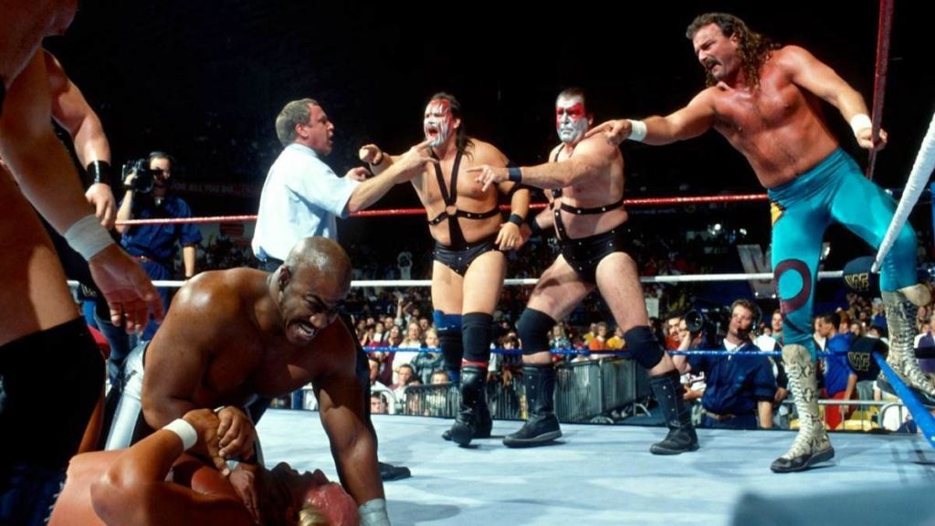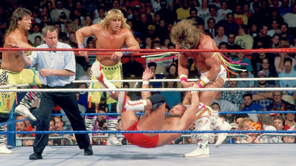 Nel corso dell’incontro infatti Heenan gli mandò contro tutti gli uomini, da Arn Anderson, ad Haku, fino ad André the Giant, ma Ultimate Warrior sembrava a prova di proiettile, e riuscì a tenere testa a tutti! Ma per quanto dinamite avesse in corpo, persino il Guerriero a un certo punto dovette cedere all’inferiorità numerica, ma per fortuna arrivarono in suo soccorso i Rockers e Jim Neidhart, i suoi futuri compagni di squadra a Survivor Series.