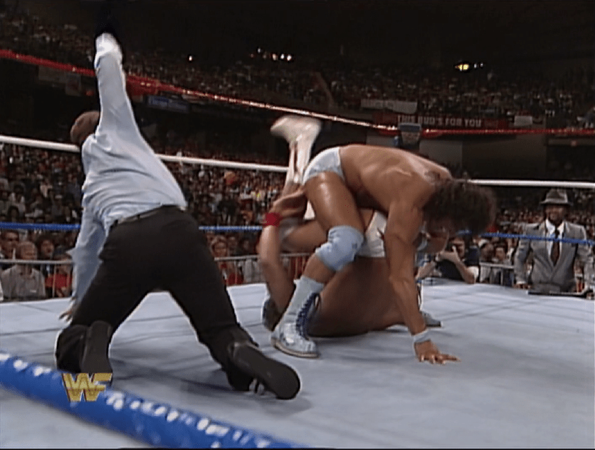 Fu poi il momento del Rude Brood (Rick Rude, Mr. Perfect, e i Rougeaus) contro i Roddy’s Rowdies (Roddy Piper, Jimmy Snuka, e i Bushwackers). I Rougeau furono i primi a cadere, venendo entrambi schienati dai vecchi leoni chiamati a dimostrare di avere ancora tante cartucce da sparare, ossia Jimmy Snuka e Roddy Piper, ma nonostante il netto svantaggio di essere in 2 contro 4, Rick Rude e Mr. Perfect risponderono altrettanto, eliminando i Bushwackers. Con 4 nomi del genere a non doversi spartire lo spazio con altre coppie la situazione divenne incandescente, e tra Rude e Piper furono così concentrati a farsi a pezzi che si fecero entrambi eliminare per doppio count out, lasciando i destini del match ai soli Snuka e Mr. Perfect. Nonostante “Superfly” avesse un bagaglio di esperienza superiore, Mr. Perfect lo affrontò di petto, sicuro di sé in virtù della sua imbattibilità, e alla fine riuscì a trionfare con la sua Perfect-plex! Per il secondo anno consecutivo Mr. Perfect era arrivato sino alla fine del Survivor Series match, stavolta addirittura da unico sopravvissuto!