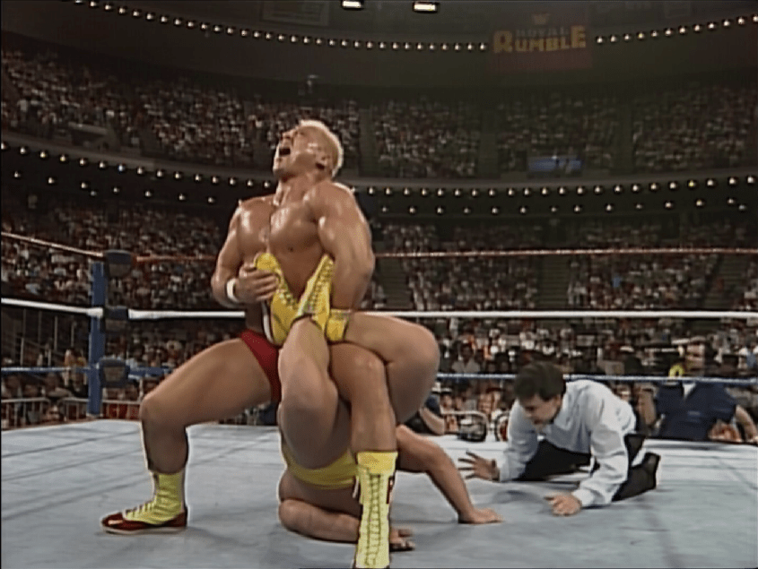 L’unico aiuto arrivò da Hercules, che eliminò Barbarian, ma presto anche lui si fece buttare fuori da Rude, lasciando l’Hulkster ancora più solo. Ma la collaborazione tra Mr. Perfect e Rick Rude fu tutt’altro che impeccabile: Rude infatti colpì per sbaglio Perfect, che per ripicca facilitò la sua eliminazione per mano di Hogan! Adesso il campione giallorosso aveva la doppia possibilità di vincere la Royal Rumble e di farla pagare a Mr. Perfect per quanto fatto alla sua cintura: un pressione che avrebbe schiacciato chiunque, ma non Hulk Hogan, da sempre abituato ai grandi appuntamenti, che scaraventò fuori Mr. Perfect aggiudicandosi la Royal Rumble!