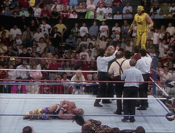 Ma per fortuna c’era ancora il main event, che sarebbe stata anche la prima volta in cui Hogan e Ultimate Warrior avrebbero condiviso lo stesso ring da WrestleMania VI, e tanto bastava a ridare entusiasmo dopo l’apparizione del tacchino gigante. L’inferiorità numerica non fu un problema per il team Hogan, visto che Tito Santana eliminò Warlord dopo appena 28 secondi! Subito dopo però fu il turno di Santana di venire eliminato, ma non sembravano comunque esserci dubbi su chi avrebbe trionfato: con Hulk Hogan e Ultimate Warrior in coppia neanche con le cannonate Ted DiBiase e soci avrebbero prevalere! E infatti i due fecero piazza pulita (tanto che Rick Martel preferì farsi eliminare per count out piuttosto che rischiare la pelle sul ring con loro!), buttando fuori prima il “Million Dollar Man” e poi Hercules con una facilità disarmante, confermandosi come le due forze più potenti in circolazione.