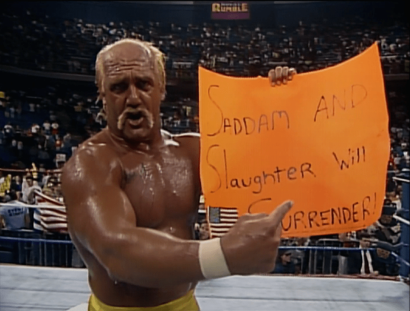 La sua vittoria fu l’unica luce di una serata amara, rimasta impressa a tutti per la vittoria di Sgt. Slaughter, e l’Hulkster lo sapeva bene: dare speranza agli altri era lo scopo della sua vita, e proprio per questo durante le celebrazioni andò tra il pubblico, prendendo ed esponendo alle telecamere un cartello di un fan, con scritto “Saddam e Sgt. Slaughter si arrenderanno“. Un semplice messaggio di speranza o una “promessa” di Hogan?