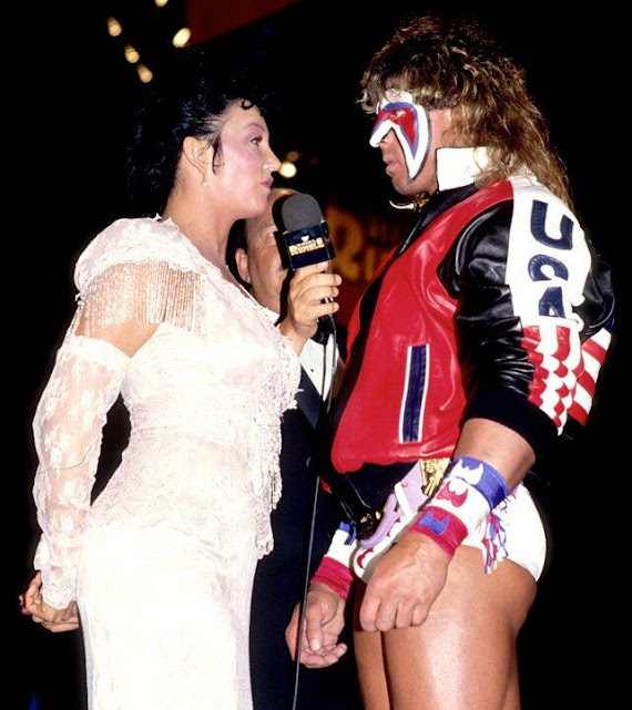 Per far riprendere fiato al pubblico, subito dopo non andò in onda un match, ma un’intervista di “Mean” Gene Okerlund con ospite la perfida Queen Sherri, che si presentò senza il suo solito trucco, e parlò in modo stranamente pacato, per chiedere con un’insolita diplomazia ad Ultimate Warrior di ufficializzare il match per il titolo WWF che Randy Savage reclamava da mesi. Il campione WWF venne fuori per rispondere a Sherri, che a quel punto le tentò tutte pur di strappare un sì. Fu stranamente gentile con Ultimate Warrior nei modi, finché non iniziò persino a toccarlo in modo provocante… Sherri stava cercando di sedurre il Guerriero per far ottenere il match! Il tutto con la regia di Randy Savage, che se ne stava nel backstage speranzoso che cedesse!