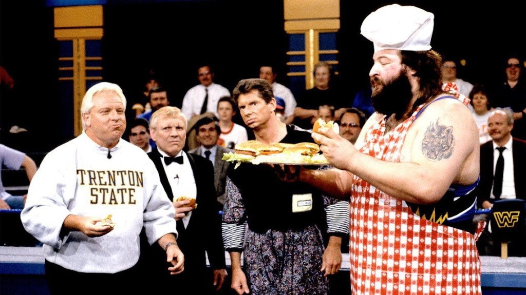 Earthquake si era superato, mostrando un sadismo inimmaginabile neanche per la più malata delle menti, tanto che Hayes che quasi si mise a vomitare. Che fossero veri hamburger di serpente o solo una provocazione il gesto rimaneva disgustoso, con Vince McMahon che se ne andò rovesciando il piatto di hamburger, mentre “The Brain” ed Earthquake si guardavano divertiti.