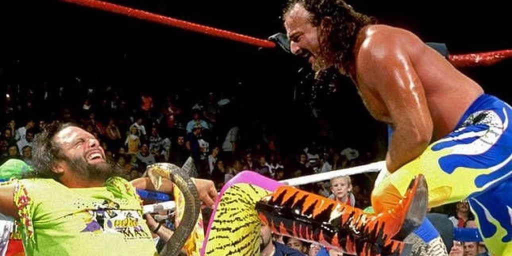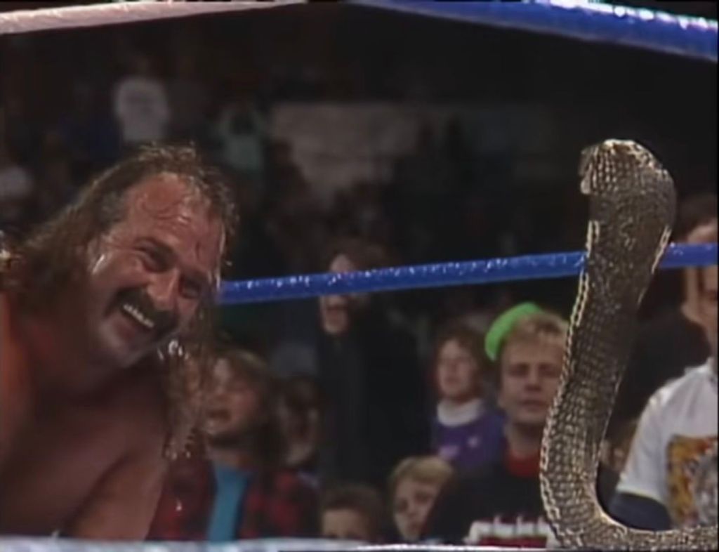 Nel frattempo Savage continuava a fare il commentatore, il che rendeva la vicinanza tra lui e Jake Roberts inevitabile, soprattutto quando “The Snake” era impegnato in un match, e il punto di non ritorno si raggiunse pochi giorni prima di Survivor Series, quando Roberts lo invitò a farsi sotto! “Macho Man” sapeva che Jack Tunney non gli avrebbe permesso di lottare, ma Savage era troppo orgoglioso per tirarsi indietro, e decise di affrontarlo comunque. Le cose però precipitarono presto: Jake Roberts riuscì a bloccare le braccia di Savage tra le corde, ottenendo tutto il tempo necessario per tirare fuori il suo cobra Lucifer dal sacco, che appena fu liberato conficcò i suoi denti nel braccio di Savage!