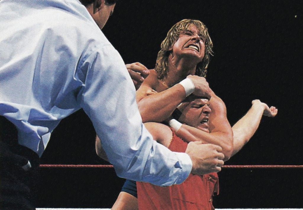 Anche se Bret Hart era stato d’ispirazione per tutti i wrestler della categoria di coppia comunque, l’Hitman non se la passava proprio benissimo: dopo quanto successo tra lui e The Mountie a novembre infatti, fu sancito un match tra i due con la cintura in palio un paio di giorni prima di Royal Rumble, dove sorprendentemente a trionfare fu… The Mountie! L’esito del match divenne meno sorprendente non appena venne rivelato che l’Hitman aveva lottato con l’influenza, che aveva permesso a The Mountie e Jimmy Hart anche di pestarlo con calci e colpi di cintura a match finito.