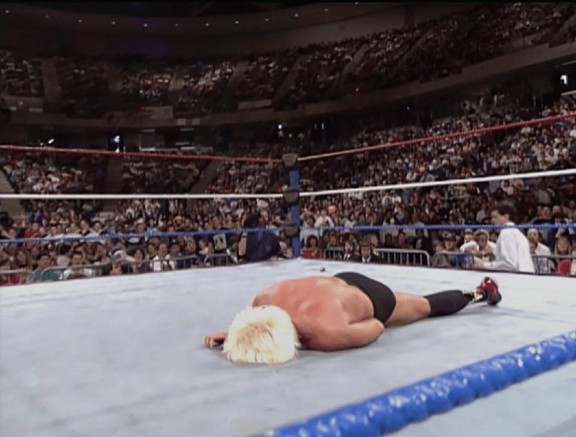 Sembrava solo questione di tempo prima che il favorito Hulk Hogan trionfasse, almeno finché non entrò uno degli uomini più temibili del match… Sid Justice, finalmente tornato dopo l’infortunio! Sid fu l’assoluto mattatore, e fece piazza pulita del ring finché non ne rimasero solo in 4: lui, Randy Savage, Hulk Hogan, e ancora Ric Flair! Il primo a cadere dei final four fu “Macho Man”, e a quel punto sembrava scontato che Hogan e Sid (che si stimavano reciprocamente sin dall’estate), si alleassero per eliminare il “Nature Boy”, per poi giocarsela tra di loro, e invece contro ogni pronostico… Sid sorprese Hogan alle spalle e lo eliminò! Ora erano rimasti solo Sid e un Ric Flair tenuto insieme praticamente col nastro adesivo!