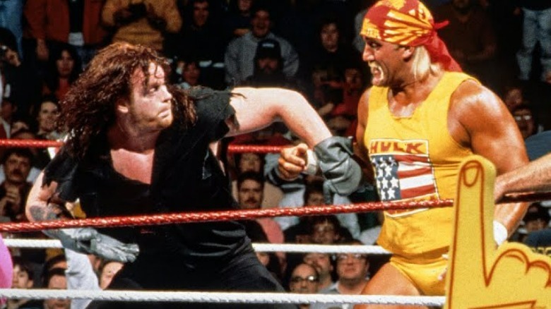 Naturalmente il primo con cui l’Hulkster venne alle mani fu Undertaker, che riuscì anche a buttare fuori nel tripudio dei fan! Lo scontro tra Savage Roberts, la rivincita di Hogan su Undertaker, ma anche gli ingressi di Virgil, Rick Martel, Sgt. Slaughter, e del colonnello Mustafa… com’era prevedibile da un match con così tante stelle insieme successero talmente tante cose che era difficile per il cuore degli spettatori tenere il ritmo, tanto che tutti si erano dimenticati che Ric Flair fosse ancora nel ring! A prescindere da come fosse finita, la sua prova sarebbe stata ricordata come una delle più memorabili.