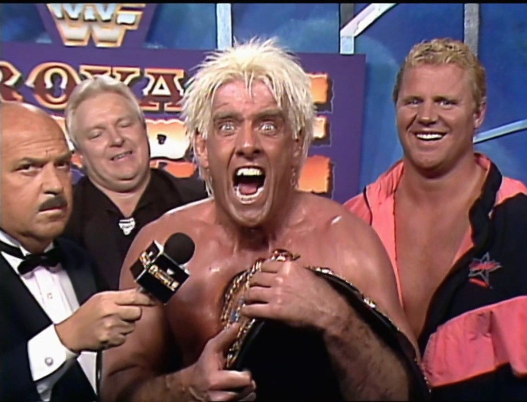 Non ci fu molto spazio per i festeggiamenti nel ring, perché a prendersi la scena fu la rissa tra Hulk Hogan e Sid Justice, che vennero tenuti separati solo da una schiera di arbitri e ufficiali. Le vere celebrazioni si svolsero nel backstage al microfono di “Mean” Gene Okerlund, dove stavolta Flair si lasciò andare. Il “Nature Boy” era in estasi, come un bambino, perché nonostante avesse subito di tutto nel corso del match la carica che gli aveva dato la vittoria era incontenibile, tanto che neanche sembrava un uomo che aveva lottato per più di un ora! Circondato da Bobby Heenan e Mr. Perfect, venne investito della cintura da Jack Tunney in persona, che nonostante non amasse chi non rispettava le regole e giocava sporco come Flair, dovette togliersi il cappello di fronte alla sua impresa, che il “Nature Boy” definì il singolo momento più bello di tutta la sua vita, perché ora finalmente possedeva la cintura che rendeva un uomo il vero numero uno di tutta l’industria del wrestling (lanciando una frecciata neanche troppo velata all’NWA), e nessuno poteva dirgli nulla!