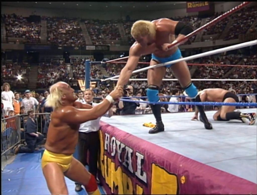 L’Hulkster era esterrefatto: non poteva credere di essere stato eliminato da un uomo di cui si fidava così ciecamente, ma del resto nella Royal Rumble le amicizie non contavano, soprattutto col titolo WWF di mezzo! Ma Hogan non era dello stesso avviso: per lui l’amicizia e la lealtà contavano più di ogni altra cosa, e intraprese un’accesa discussione con Sid, fino a fare qualcosa di decisamente poco sportivo, soprattutto per i suoi standard: afferrò Sid per un braccio, tentando di buttarlo fuori dalla frustrazione!