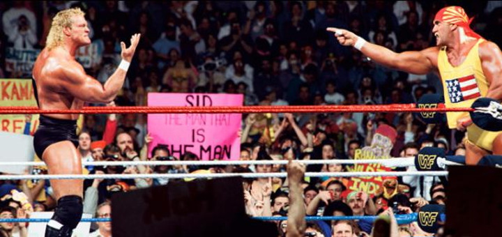 Iniziato il match, Sid diede nuovamente prova della sua incalcolabile forza. Solo André the Giant e Ultimate Warrior avevano tenuto testa alla forza erculea di Hogan, tanto che neanche ci fu bisogno di interventi significativi del suo manager Harvey Wippleman. Fu incontro dai ritmi piuttosto lenti, in cui Hogan cercò di trovare la carica necessaria, senza però che Sid lo lasciasse in pace un secondo. Dopo un match largamente dominato la vittoria di Sid sembrava inevitabile, ancor di più quando stese Hogan con la sua impressionante Powerbomb, dalla quale però… l’Hulkster uscì! La Powerbomb che aveva mandato all’ospedale tanti atleti sembrava aveva appena fatto il solletico a Hogan, che si rialzò all’istante, carico e pronto a chiudere la faccenda! Persino Sid, sempre molto sicuro di sé, dopo averlo visto uscire dalla Powerbomb capì che se Hogan voleva chiuderla allora non c’era più speranza per lui! Carico del supporto di tutti gli Hulkamaniacs, Hogan mise a terra Sid, e connesse -forse per l’ultima volta- la sua leggendaria Leg Drop, da cui contro ogni pronostico… Sid uscì! Nessuno, ma davvero nessuno, in tanti anni era mai uscito dalla Leg Drop di Hogan, la Leg Drop che aveva steso André the Giant, Randy Savage, Earthquake, King Kong Bundy e tanti altri, e che ora di fronte a Sid Justice -che divenne il primo a uscirne- sembrava inutile!
