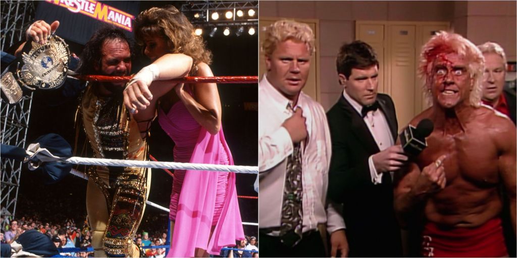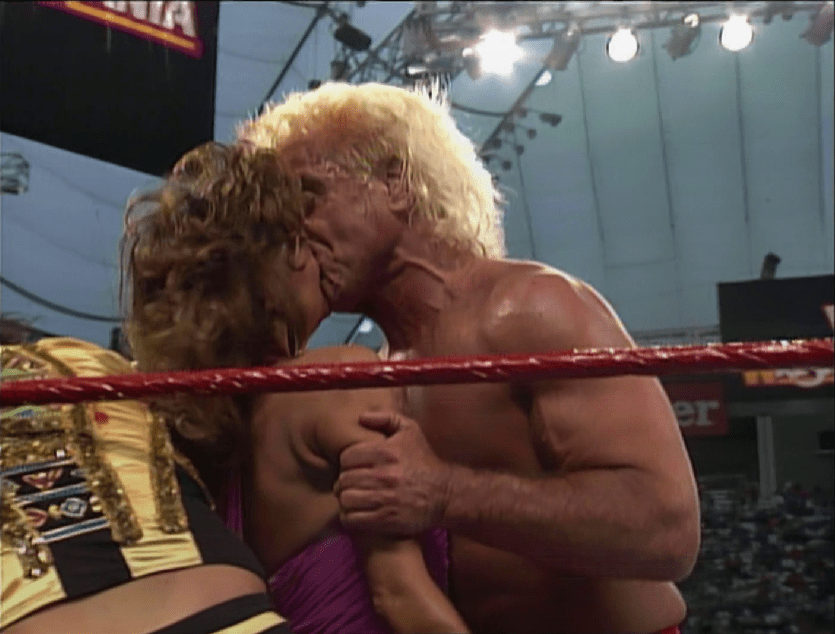Naturalmente lei lo respinse con uno schiaffone, dopo la quale venne travolto da un indemoniato Randy Savage magari esausto dalla battaglia, ma che dopo quel bacio avrebbe potuto combattere anche la Terza Guerra Mondiale! Savage era una furia, e il “Nature Boy” -grondante di sangue- riuscì a tornarsene nel backstage con le sue gambe solo grazie a una serie di ufficiali che bloccarono Savage. Tra i due non era ancora finita, e Ric Flair aveva sicuramente altre frecce nel suo arco, forse persino più velenose delle “semplici” foto truccate.