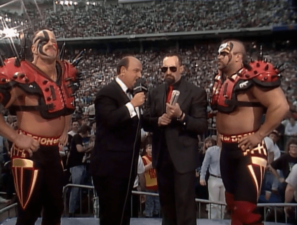 Subito dopo, sebbene non fossero previsti per un match in serata, i Legion of Doom fecero un’apparizione a sorpresa… e che sorpresa: il loro storico manager Paul Ellering aveva firmato con la WWF, e sarebbe tornato ad assistere i suoi clienti storici per tornare a conquistare i titoli di coppia WWF!