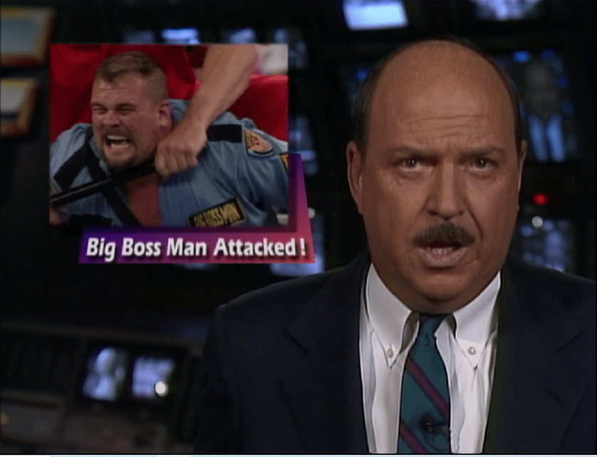 Il detenuto aveva ancora l’uniforma carceraria addosso, e pestò Big Boss Man con tutta la rabbia che aveva in corpo, una rabbia che era stata forgiata da anni di prigione, e che aspettava solo di venir fuori contro l’uomo responsabile! Aveva studiato la sua vendetta nei minimi particolari, e appena ne ebbe la possibilità prese a Big Boss Man le sue manette per bloccarlo alle corde, per poi prendere anche il manganello e usarlo per massacrarlo! Big Boss Man era assolutamente inerme e impossibilitato a difendersi, e nessuno aveva il coraggio di mettersi tra lui e un galeotto assetato di sangue, ma non appena la violenza divenne troppo arrivarono una serie di ufficiali per fermare il tutto, mentre il galeotto si volatilizzò, con il manganello del povero Big Boss Man ancora con lui…