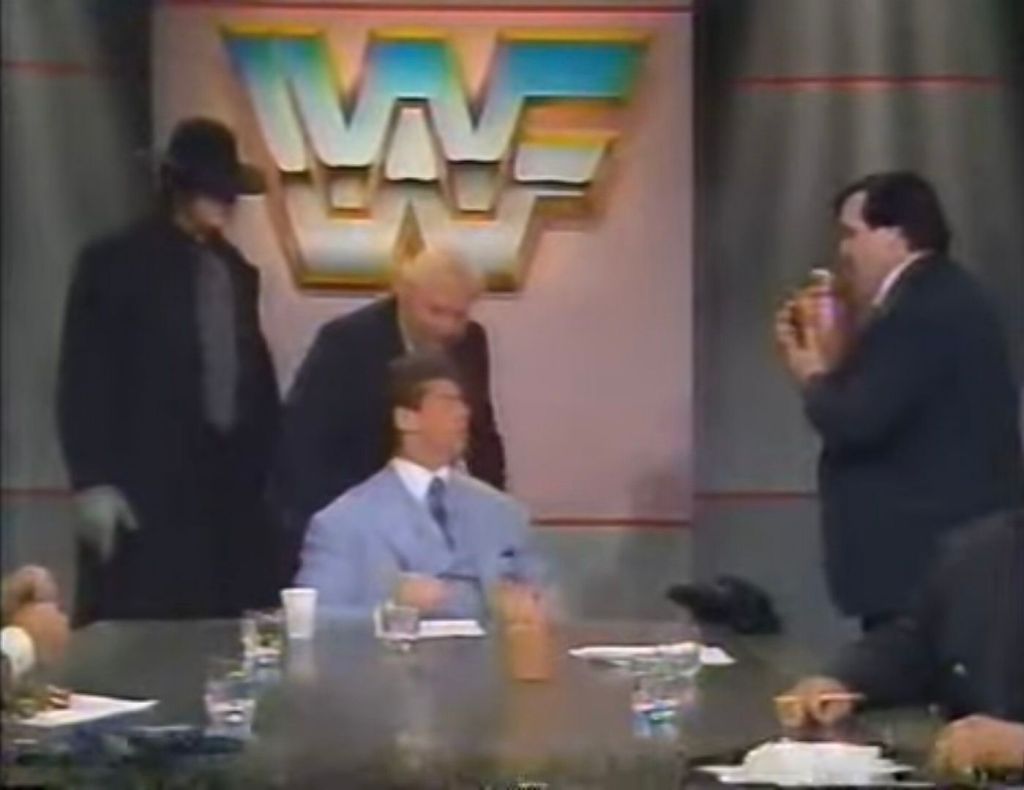 La follia regnava incontrastata in WWF: non solo Papa Shango seminava il terrore, ma c’era anche The Berzerker a non essere meno in quanto a essere fuori di testa, visto che neanche un paio di mesi prima aveva cercato di uccidere Undertaker con la sua spada! Dopo il match con il vichingo, Undertaker era addirittura sparito dalle scene, anche se nessuno credeva fino in fondo che un’entità apparentemente invincibile come lui fosse stato fatto fuori da un essere tanto bizzarro come The Berzerker. Ma il Becchino non aveva intenzione di farla passare liscia al vichingo, e tornò a farsi vedere nello studio di Prime Time Wrestling insieme a Paul Bearer, seminando il terrore come al solito.