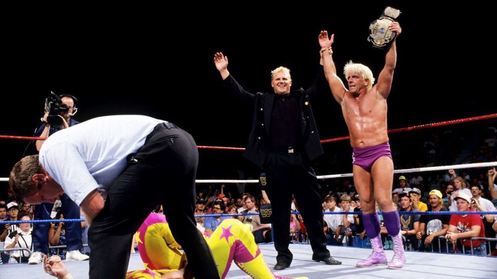 Savage combatté tutto il match con una gamba in meno e non solo… Razor Ramon, che oltre a sfidarlo la settimana precedente lo aveva attaccato in un’intervista pre-match, infierì sulla gamba infortunata di Savage durante il match lontano dagli occhi dell’arbitro, lasciando il campo libero a Ric Flair per la sua Figure 4 Leg Lock! Savage non voleva dare a Flair la soddisfazione di cedere, e nonostante il dolore lancinante resistette più che poteva, ma dove arrivava il suo coraggio purtroppo non arrivò il suo corpo, che lo tradì nel momento più decisivo facendogli perdere i sensi dal dolore. Le spalle a terra di Savage potevano costringere l’arbitro a una sola cosa: contare fino a 3 e dichiarare Ric Flair nuovo campione mondiale WWF!