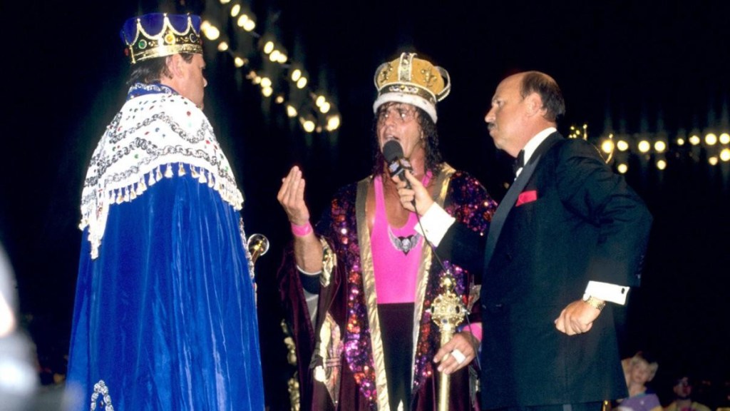 Era un momento di assoluta gioia: Bret raggiunse Gene Okerlund sullo stage per l’incoronazione ufficiale, finché la cerimonia non venne interrotta da Jerry “The King” Lawler, che non poteva tollerare che qualcun’altro si fregiasse dell’appellativo di “Re”.