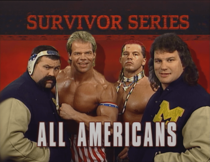 Pur senza oro alla vita, ottobre fu anche il mese dell’ascesa del colosso finlandese Ludvig Borga. La sua campagna anti-americana all’apparenza era simile a quella che Lex Luger aveva già affrontato con Yokozuna, ma in realtà ben diversa: se per Yokozuna era “solo” voler dimostrare superiorità, nel caso di Borga era una crociata fatta di valori in cui credeva davvero con tutto sé stesso, e per cui sarebbe stato disposto a morire. Per questo il finlandese alzò la posta sfidando Luger a un classico Survivor Series match! La scelta degli uomini al loro fianco fu molto simbolica: Luger scelse Tatanka -perché cosa c’era di meglio di un imbattuto nativo americano per contrastare un anti-americano?- e gli Steiner Brothers, pura eccellenza in uno sport legato comunemente proprio alla cultura statunitense come il wrestling studentesco, e tutti sotto il nome de… gli All-Americans!