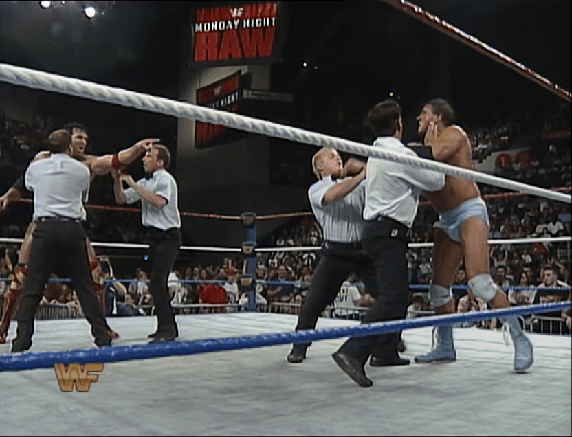 Non si parlava d’altro che della imminente Battle Royal a 20 uomini indetta dal Presidente WWF Jack Tunney, utile a decretare chi si sarebbe affrontato la settimana successiva per diventare il nuovo campione Intercontinentale dopo la sospensione di Shawn Michaels. La contesa prevedeva nomi del calibro di Razor Ramon, Mr. Perfect, Tatanka, “Macho Man” Randy Savage, Rick Martel, Bam Bam Bigelow, Giant Gonzales, Diesel, e persino “Superfly” Jimmy Snuka, tornato in occasione speciale in WWF per un paio di apparizioni. Snuka era ormai lottatore a tempo pieno per una piccola federazione di Philadelphia, la Eastern Championship Wrestling (o ECW), dove aveva anche vinto il titolo mondiale per 2 volte, ma un eventuale vittoria del titolo Intercontinentale lo avrebbe potuto legare alla WWF ancora una volta. Il destino però volle altro, facendo rimanere come ultimi contendenti Razor Ramon e Rick Martel, che si sarebbero dunque giocati il titolo in un match singolo la settimana successiva a RAW!