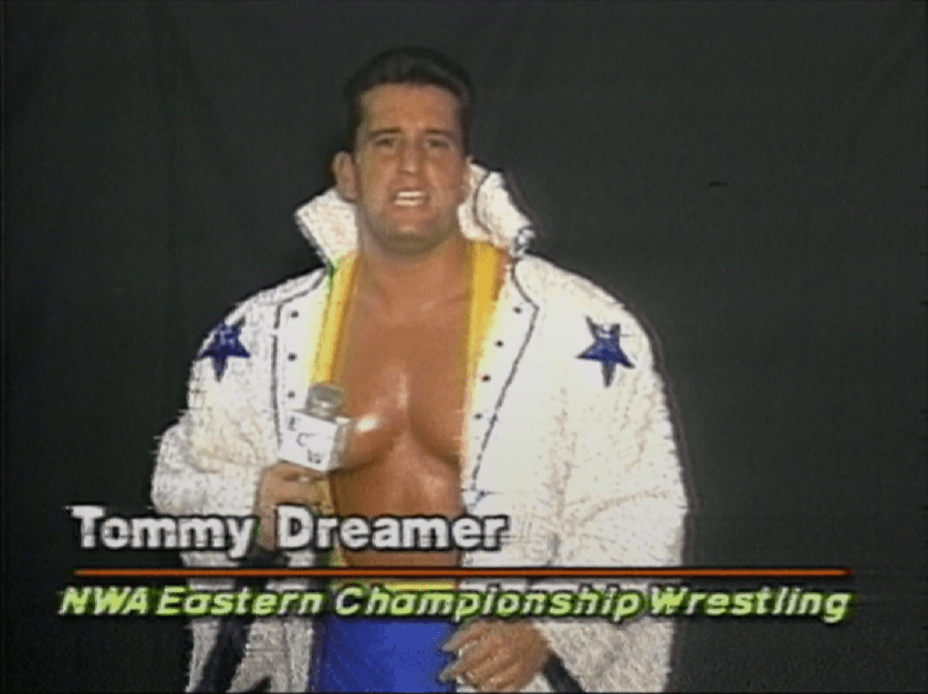Con la deriva hardcore dell’ECW tutti cercavao di dimostrare di essere i più forti e tosti in circolazione: farlo era una questione di sopravvivenza, della serie “uccidi o sarai ucciso”, tranne che per un giovane ragazzo di 22 anni, che fece il suo debutto con tutt’altra attitudine. Il suo nome era Tommy Dreamer, un sognatore di nome e di fatto: poco interessato a dimostrarsi un duro, dal look decisamente poco badass (indossava infatti delle buffe bretelle), e faccia da bravo ragazzo, forse anche troppo per un posto come l’ECW.