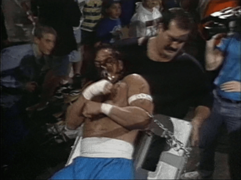 Funk non aveva preso bene il colpo subito da Sandman, per quanto involontario, ma non ce l’aveva con personalmente JT Smith, tanto che gli fece da manager durante un match contro Shane Douglas per il titolo ECW. Douglas sapeva che Smith aveva ancora il ginocchio malandato dopo la sua spaventosa cadute nello Scaffold match, e per chiudere il match lo chiuse in una Figure 4 Leg Lock, ma Smith si stava giocando il match più importante della sua vita, e resistette stoicamente come non lo si era mai visto fare: non importava che Douglas lo potesse storpiare o costargli la carriera… non avrebbe mai ceduto! Funk però non era dello stesso avviso, e lanciò all’arbitro l’asciugamano chiamando la fine del match: gesto che Smith rigettò chiaramente, rilanciando l’asciugamano in faccia a Terry Funk! Era comunque troppo tardi: l’arbitro dichiarò Smith perdente per sottomissione, con Funk che non prese bene il gesto di JT Smith, tanto che lo insultò e lo prese a schiaffi! Il texano fu molto chiaro: lui era felice di essere il ECW e di aiutare i giovani della federazione, ma non per questo avrebbe permesso a nessuno di mancargli di rispetto!