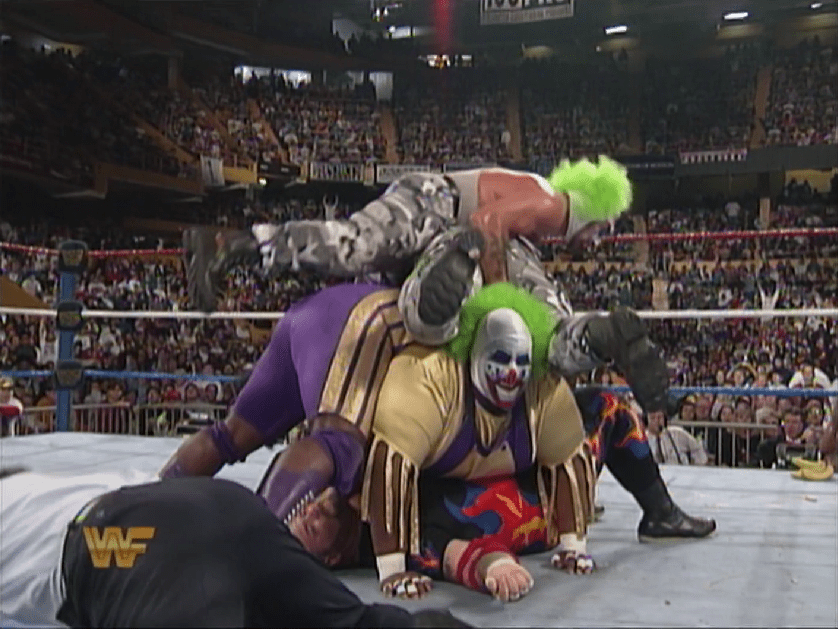 Tutti i Doink fecero fuori Booger – che aveva impiastrato di cibo tutto il ring come al suo solito- e gli Headshrinkers senza difficoltà, lasciando al solo Bigelow il compito di tentare di vincere il match. Ma neanche uno tosto come lui poteva vincere da solo contro quattro uomini, e alla fine venne schienato a sua volta: dovevano essere dei semplici pagliacci, e invece i quattro Doink furono il terzo team nella storia a vincere un Survivor Series match senza perdere uomini, il tutto tra sorrisi, scherzi, e senza prendere tutto sul serio! Bam Bam Bigelow e Luna Vachon erano furiosi, e come se non bastasse Doink (quello vero) si fece vedere sullo schermo posto alla rampa d’ingresso per deriderli! Doink era forse riuscito a vincere anche tirandosi fuori dalla battaglia, ma difficilmente Bigelow avrebbe accettato un tale affronto.