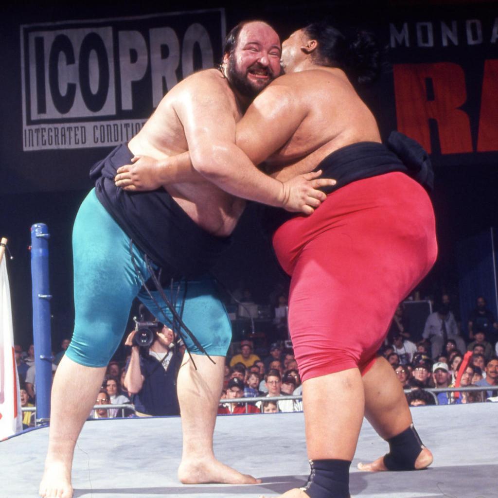 Che fosse isteria di massa o veri avvistamenti nessuno sembrava esserne certo, di certo preferiva non dargli ascolto l’uomo che lo aveva “ucciso”, Yokozuna, che dopo aver perso il titolo WWF a WrestleMania X tornò a mostrarsi come la macchina devastatrice che era sempre stata, riducendo in poltiglia ogni avversario che gli capitava. Ne fecero le spese due poveri jobber chiamati Scott Taylor e Mike Davis, che vennero massacrati dall’ex campione WWF alla fine di un Handicap match concluso, finché a placarlo arrivò uno degli elementi più imponenti del roster, Earthquake, la cui sola presenza bastò a fermare Yokozuna, che preferì lasciare il ring piuttosto che venire alle mani con lui. Per tutto il resto della settimana non si fece che parlare di come Earthquake aveva intimidito Yokozuna senza neanche il bisogno di alzare un dito: voci che Jim Cornette non poteva tollerare e che decise di mettere subito a tacere sfidando Earthquake non a un match di wrestling, ma a un incontro di… sumo! Anche se era la prima volta in WWF che se ne faceva menzione, Earthquake in passato era stato uno dei rarissimi occidentali a fare il lottatore di sumo in Giappone, e con un impressionante record di 24 vittorie e 0 sconfitte (un record assoluto per un gaijin), e questo Cornette lo sapeva, motivo per cui decise di lanciare questa particolare sfida.