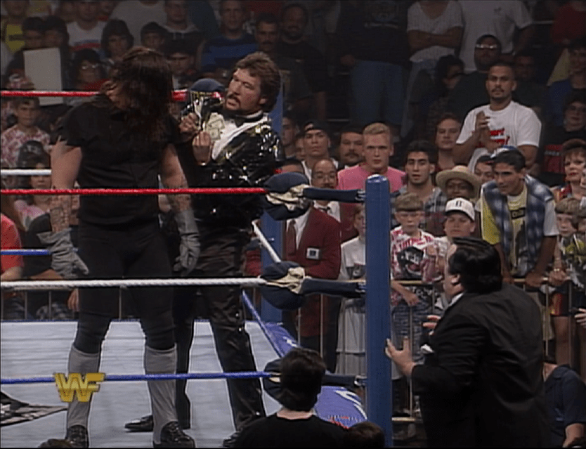 Lex Luger forse non aveva vinto la cintura Intercontinentale, ma almeno aveva dimostrato a tutti di non avere Ted DiBiase alle sue spalle, aggiungendo anche (finalmente) una dichiarazione ufficiale qualche giorno dopo a WWF Superstars, dove interruppe un’edizione dell’Heartbreak Hotel con Tatanka e DiBiase, dicendo in faccia a quest’ultimo che tra loro non c’era nessun accordo! Luger rassicurò Tatanka affermando che non c’era cifra al mondo che gli potesse far tradire i suoi principi, eppure anche di fronte a questa smentita Tatanka sembrò non credere alle sue parole, mostrando il sorriso beffardo di chi non si fa infinocchiare con un paio di parole rassicuranti.