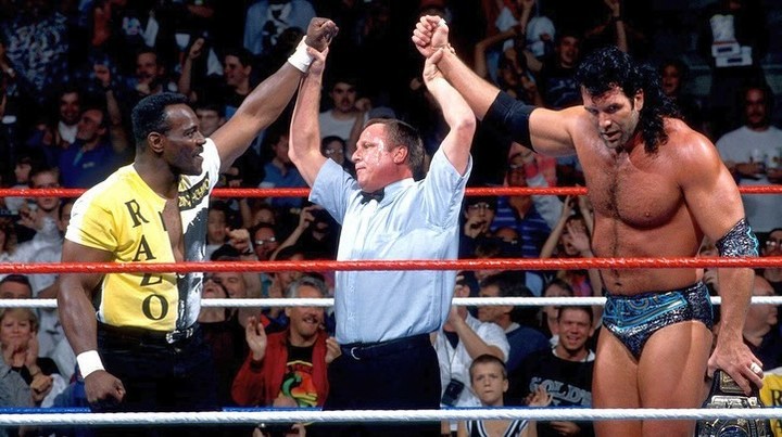 Il match successivo fu quello che nessuno avrebbe voluto vedere, perché poteva porre per sempre fine a un’amicizia già in bilico: quello tra Tatanka e Lex Luger, tra cui già nelle interviste pre-match nel backstage si respirava una tensione ormai insostenibile. Il match fu abbastanza breve, e vide l’ovvio intervento di Ted DiBiase a bordo ring, per consegnare a Luger una sorta di “bonus” in caso di vittoria, con quest’ultimo che in risposta… calciò la mano in cui DiBiase teneva i soldi! Luger confermò per l’ennesima volta che tra lui e il “Million Dollar Man” non ci fosse nulla, ma incredibilmente Tatanka approfittò della situazione per sorprendere Luger con un Roll Up e assicurarsi la vittoria! Ted DiBiase era appena costato il match al “suo” Lex Luger, e questa era probabilmente la conferma definitiva che tra i due non ci fosse nulla, ma la cosa sembrava non interessare a Tatanka, perché anche a match vinto si accanì contro Luger… per poi abbracciare Ted DiBiase! A quel punto divenne chiaro a tutti che DiBiase era sempre stato 10 passi avanti a tutti: a vendersi non era stato Lex Luger ma Tatanka!
