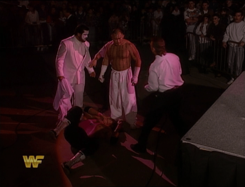 Senza aiuti dei suoi compari, Tatanka era tutto a disposizione della furia di Lex Luger, che dopo un’estenuante battaglia si aggiudicò la vittoria grazie alla sua Bionic Elbow eseguita lanciandosi dalla seconda corda! Finalmente Lex Luger aveva dato a Tatanka la lezione che meritava da mesi, dimostrando agli uomini di Ted DiBiase di poterli benissimo contrastare, e magari anche rovinare i loro piani di conquista!