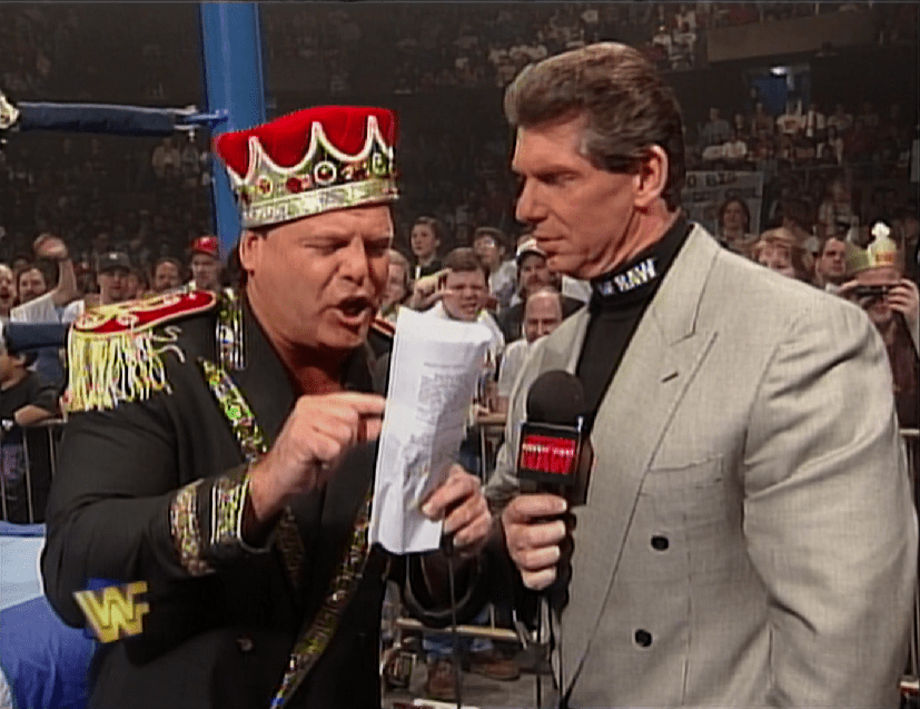 Approfittando dell’arbitro momentaneamente fuori gioco (cadendo si era infatti ritrovato fuori dal ring con un piede incastrato tra la prima e la seconda corda), i due giapponesi aiutarono come poterono Jerry Lawler, con Hakushi, che colpì Bret Hart con la sua Diving Headbutt dalla terza corda, permettendo a Lawler di schienarlo! Nessuno poteva credere che Jerry Lawler avesse battuto Bret Hart di nuovo, stavolta addirittura schienandolo, ma bisognava arrendersi al pensiero che sarebbe stato per sempre il suo incubo peggiore, perché per quante risorse l’Hitman pensasse di avere, “The King” ne aveva persino di più!