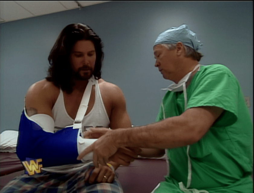 C’era un precedente simile risalente a SummerSlam 1993, e proprio contro Jerry Lawler, che finse un infortunio pur di non affrontare Bret Hart, mandando al suo posto Doink il clown. Bret riuscì a battere Doink per poi combattere contro “The King” poco dopo, perdendo però per squalifica per la troppa foga messa. Quello era stato anche l’ultimo confronto tra i due per parecchio tempo, prima del loro match a RAW di 2 mesi prima, ma ora era il momento di farla finita: ad In Your House sarebbe stato lo scontro decisivo, e Bret Hart promise che avrebbe dedicato la vittoria alla madre (In Your House si sarebbe infatti svolto nel giorno della festa della mamma), visto quanto Lawler aveva insultato la sua famiglia nel tempo.