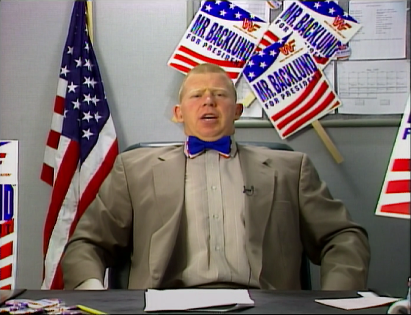 Di certo per Bret Hart non si sarebbe ripresentato il problema Bob Backlund, e non solo per la sua vittoria di WrestleMania XI, ma perché Backlund rivelò aveva altri piani in programma: aveva intenzione di candidarsi per la presidenza degli Stati Uniti! Alle elezioni mancava ancora un anno e mezzo, e Backlund aveva deciso di lasciare il wrestling lottato per puntare all’unico luogo dove poteva davvero far tornare l’America ai valori dei suoi tempi, che tanto rimpiangeva da mesi: la Casa Bianca! La svolta politica naturalmente non allontanò Backlund dai programmi WWF, sfruttandoli anzi per iniziare con la sua propaganda, trovando (ovviamente) in Jerry Lawler il suo primo sostenitore, e che prevedeva di partire innanzitutto dall’istruzione, dove era prevista l’abolizione di calcolatrici e altri strumenti elettronici dalle scuole, niente vacanze estive, e l’obbligo a leggere un classico della narrativa americana alla settimana, oltre che la messa al bando della musica rock in favore di Beethoven e Bach!