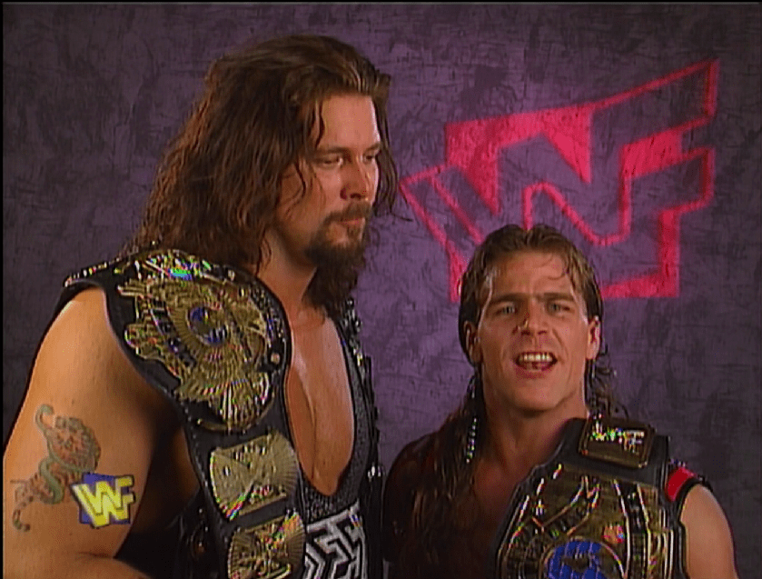 Anche se non erano una coppia rodata, Yokozuna e British Bulldog lavorarono bene insieme, anche se Diesel & Shawn Michaels dall’alto della loro esperienza insieme furono di gran lunga superiori, tanto che Cornette dovette tirare fuori un asso dalla manica a cui nessuno avrebbe mai pesato, ossia l’intervento… di Owen Hart! La sua presunta assenza era stata chiaramente l’ennesima sporca trovata di Jim Cornette, ma Diesel fermò in tempo il suo intervento stendendolo con una Jacknife Powerbomb! Spinto dall’adrenalina Diesel schienò proprio Owen, nonostante non facesse parte del match, e lo stesso arbitro non si fece troppe domande, perché contò fino al 3! Diesel e Shawn Michaels avevano fatto la storia: ora in due detenevano tutte quante le cinture maschili della federazione!