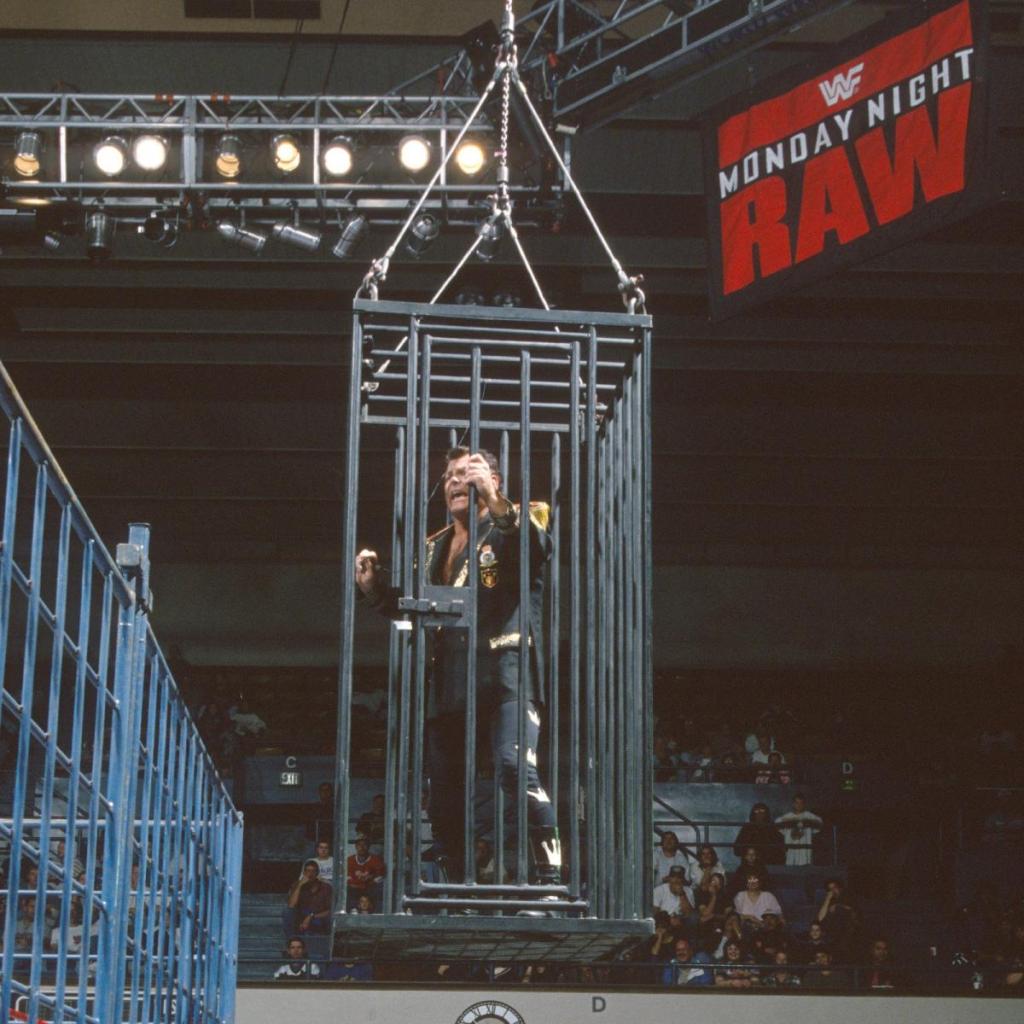 Forse la gabbia avrebbe impedito a Lawler di intervenire di nuovo, ma il Presidente WWF Gorilla Monsoon non si fidò comunque, e si adoperò per far mettere un’altra gabbia accanto al ring, così da mettercelo dentro e issarlo sopra il ring se avesse cercato di infierire! Una punizione così insolita che nemmeno Jerry Lawler la prese sul serio, ma si rivelò un grosso errore, perché non appena provò ad aiutare Isaac Yankem arrivò Gorilla Monsoon, che gli ordinò di entrare nella gabbia immediatamente! Il Presidente faceva assolutamente sul serio, e una volta che Lawler andò dietro le sbarre la gabbia fu sollevata e sospesa sopra il ring, con “The King” che si mise a piangere istericamente dalla paura!