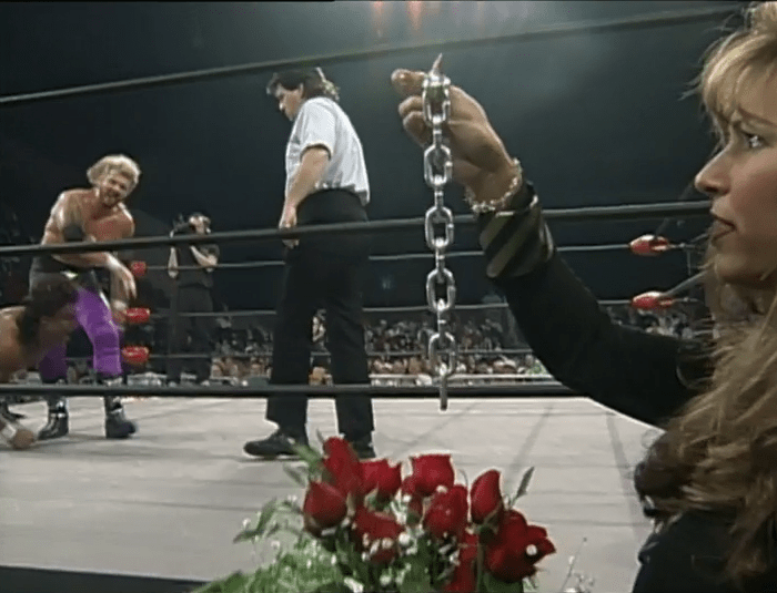 Tra i soddisfatti di World War 3 c’era ovviamente anche Diamond Doll, che non rimpianse affatto il suo ormai ex assistito: a Nitro infatti Johnny B. Badd e Diamond Dallas Page si affrontarono in un rematch di World War 3, dove poco prima dell’inizio Page si presentò con un mazzo di fiori da porgere a Diamond Doll con all’interno… una catena! Nonostante fosse un chiaro segnale diretto a Diamond Doll di usare la catena contro Badd, la sua ex manager non mostrò certamente nostalgia dei loro momenti insieme, perché passò la catena a Badd, che la usò contro DDP per lo schienamento vincente.