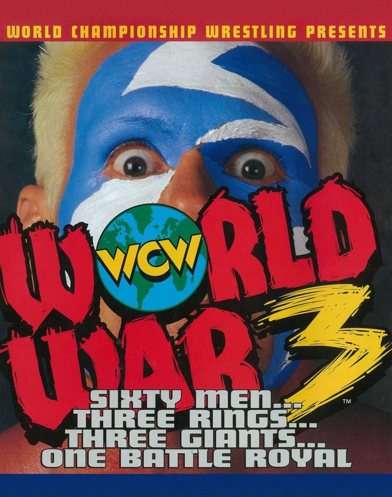 Ma la serata dei quattro doveva ancora concludersi col main event, una nuova inedita stipulazione per il titolo mondiale WCW: una Battle Royal da 60 uomini divisi in 3 ring, a cui bastava dare un occhiata ai nomi di alcuni partecipanti per percepirne lo stratosferico starpower… Randy Savage, Jim Duggan, Ric Flair, The Giant, Hulk Hogan, Lex Luger, Eddie Guerrero, Paul Orndorff, Sting, Brian Pillman, Diamond Dallas Page, Sting, Arn Anderson, Taskmaster, Chris Benoit, e tanti altri… il World War 3 match poteva iniziare! Come prevedibile il match fu incredibilmente caotico -anche troppo- e vide i 6 favoriti (Hogan, Savage, Flair, Sting, Luger, The Giant) arrivare fino alla fine, con Hulk Hogan che fece addirittura l’impresa di eliminare The Giant, Luger, e Sting con un colpo solo (!) per poi vedersi trascinare fuori dal ring da The Giant per la frustrazione, con l’arbitro che di conseguenza decretò nuovo campione l’ultimo uomo rimasto nel ring… “Macho Man” Randy Savage!