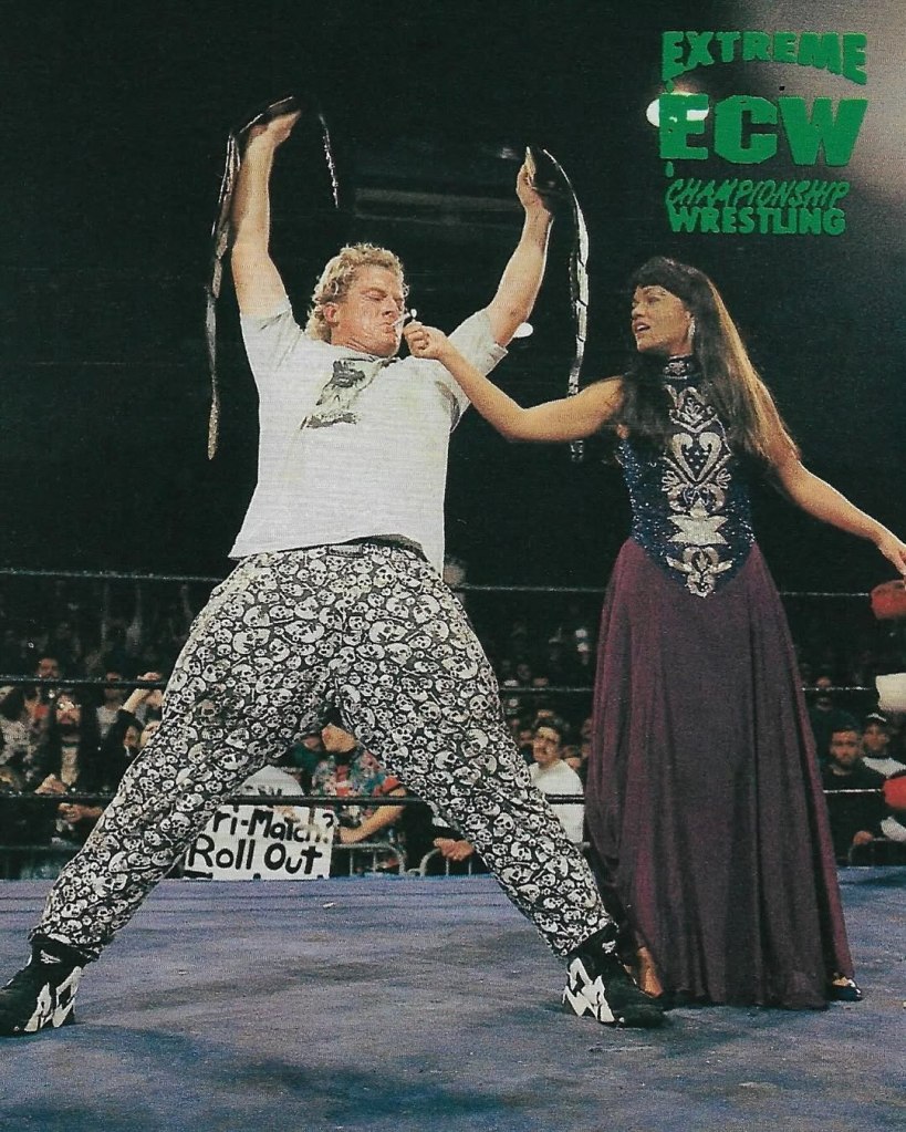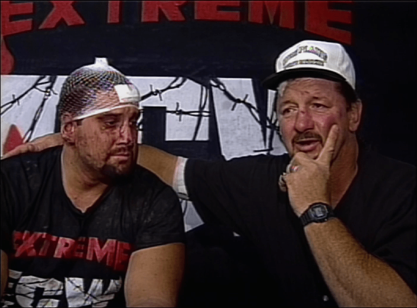 L’arroganza di Steve Austin però, che il mese prima gli era costato il match contro Whipwreck, gli si ritorse di nuovo contro, perchè Sandman tentò di schienarlo, con l’arbitro contò il 3 finale… nonostante Austin avesse il piede sulla corda! Si trattava di una svista arbitrale abbastanza grave, ma non importava quanto Austin se la prendesse con l’arbitro: in ECW il caos era all’ordine del giorno, e se voleva affermarsi a Philadelphia avrebbe fatto bene a tenerlo sempre a mente e farsene una ragione! Adesso Sandman era sia campione ECW che di coppia, e insieme a 2 Cold Scorpio deteneva tutte le cinture della federazione!